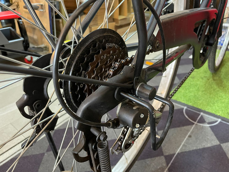 作業前に確認したところ、リアディレイラー(後ろの変速機)にも少しズレがあり、